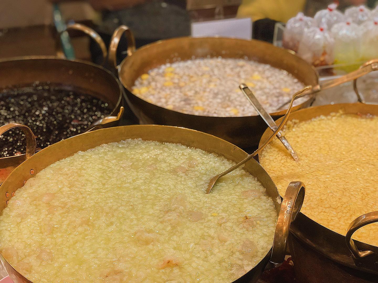 Must-Eat: Pla Grim Kai Tao (salted-sweet vermicelli), Khao Niew Piak (sticky rice pudding), Sago Piak (sago in coconut milk), Tao Suan (mung bean pudding), durian sticky rice.