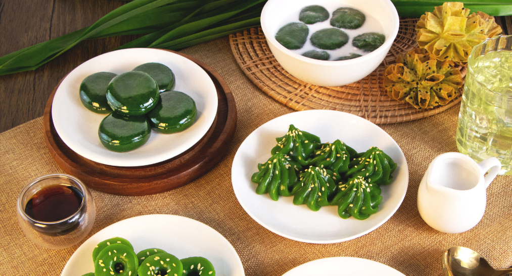 Must-Eat: Inthanin or “Yoksod Ball” (chewy pandan balls), Piakpoon-Kati (steamed pandan pudding).